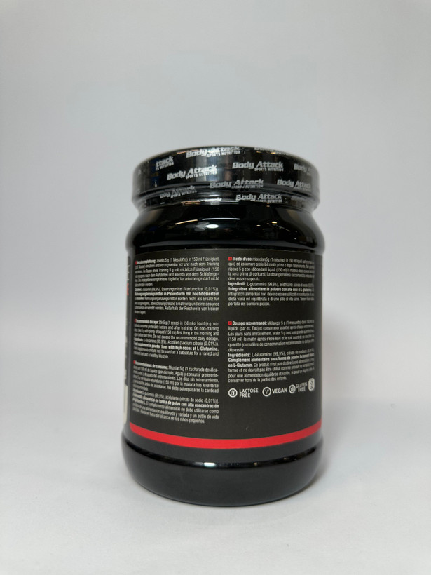 اسید ال گلوتامین بادی اتک BODY ATTACK 100% PURE L-GLUTAMIC ACID اسید آمنه لازم برای رشد عضلات را در اختیار شما قرار می دهد. ال گلوتامین 100% خالص به عضلات شما کمک می کند تا ریکاوری شوند. اسید آمینه در متابولیسم پروتئین در فرایندهای مهم ریکاوری و ساخت عضلات نقش دارد. تامین گلوتامین کافی برای بدن به عنوان یک ماده سازنده برای عضلات یکی از کارهایی است که باید در نظر داشته باشید.