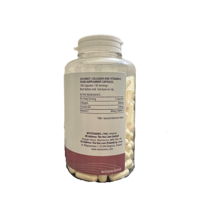 مکمل کوکونات کلاژن مای ویتامینز یکی از بهترین مکمل های موثر در زیبایی و شادابی است که حاوی ترکیبی از روغن نارگیل، کلاژن و ویتامین سی است. این محصول بی نظیر، به دلیل مواد تشکیل دهنده ای آن، از بدن در برابر استرس اکسیداتیو محافظت می کند. به کمک این مکمل می توانید نشانه های پیری پوست خود را کاهش دهید. همانطور که می دانید، روغن نارگیل در خود تری گلیسیریدهایی با زنجیره متوسط دارد و می تواند از پوست، مو و ناخن شما به خوبی محافظت کند. وجود کلاژن در این مکمل باعث از بین رفتن چین و چروک ها و شل شدگی های پوست می شود و رطوبت و خاصیت کشسانی مورد نیاز پوست را تامین می کند.