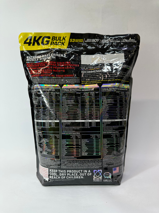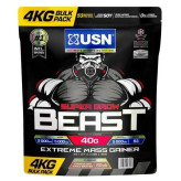 گینر مس یو اس ان USN Super Grow Beast یکی از محصولات پر کالری شرکت USN است که در کیسه 4 کیلوگرمی عرضه می شود و در مجموع 53 وعده را ارائه می دهد. Super Grow Beast دارای 40 گرم پروتئین در هر وعده و 5 گرم کراتین مونوهیدرات است. این محصول کربوهیدرات کمتری نسبت به پروتئین دارد و در دو طعم سنتی شکلاتی و وانیلی به بازار عرضه می شود.