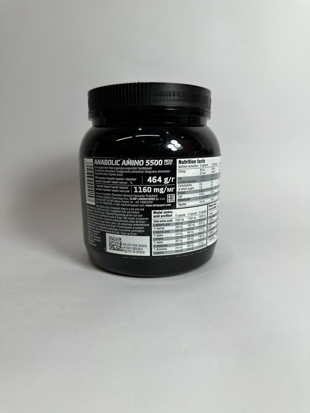 آمینو آنابولیک مگا کپس 5500 الیمپ یک مکمل حاوی آمینو اسیدهای غنی شده با ویتامین B6 است. این مکمل از برند الیمپ حاوی پپتیدها و اسیدهای آمینه آزاد پیچیده است که برای سنتز پروتئین های بافت عضلانی ضروری هستند.