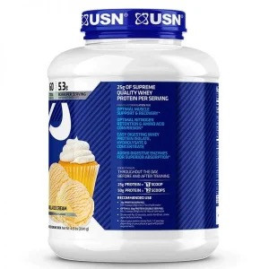 مکمل ویUSN شامل پروتئین وی ایزوله میکروفیلتر به همراه وی کانسنتریت و وی هیدرولیز می باشد . پروتئین وی usn علاوه بر این دو پروتئین ، دارای ویژگی جذب بسیار بالا نیز هست .وی usn از جمله مکمل های پروتئین با هضم بسیار آسان و قابلیت حل بالا می باشد که همین ویژگی این مکمل را به یکی از برترین مکمل های پروتئین تبدیل کرده است . هر پیمانه از پروتئین وی USN شامل 25 گرم پروتئین اعلا می باشد که خود آن حاوی 5.3 گرم BCAA میباشد .