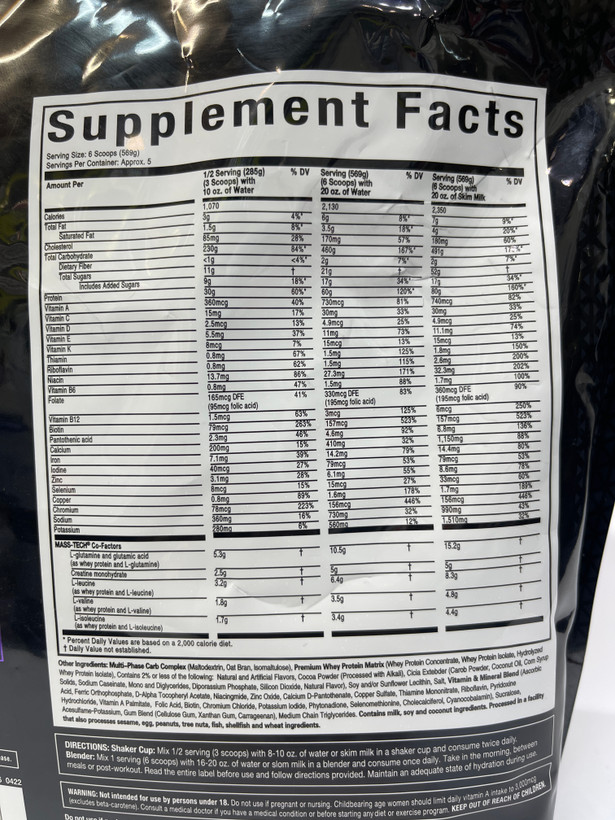 فرمول جدید و علمی مس تک، کالری زیاد (در صورت ترکیب با 475 میلی لیتر شیر بدون چربی). پروتئین وی با کیفیت بالا و کربوهیدرات های پیچیده با هضم آسان را ارائه می دهد. این فرمول آن قدر قدرتمند است که فقط به مصرف یک سروینگ در روز از آن نیاز دارید!
