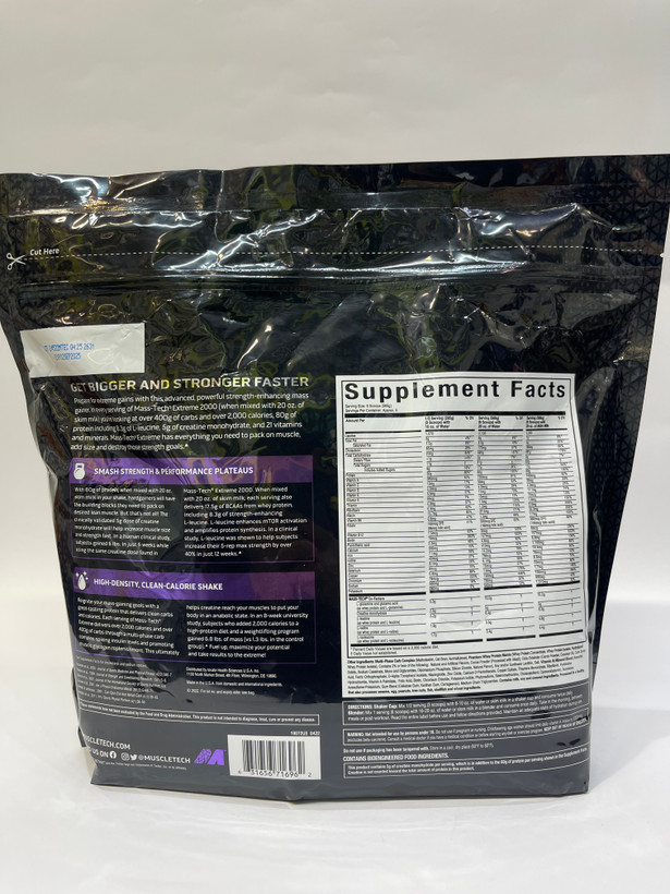 مس تک اکستریم 2000 حاوی 80 گرم پروتئین، بیش از 400 گرم کربوهیدرات و 2000 کالری تولید کننده مس، به همراه 8 گرم ال لوسین (در صورت مخلوط شدن با 475 میلی لیتر شیر بدون چربی)، 5 گرم کراتین و 20 نوع ویتامین و مواد معدنی است.